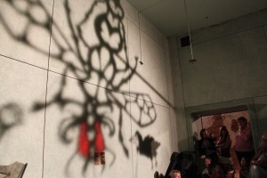 A short piece of children’s shadow puppet theatre, Wings, Wasps and Feathers told the story of an organised, fastidious sparrow and a messy, free-spirited rook who argued all the time – that is until their tree was invaded by wasps, when they have to put aside their differences and team up with all the tree’s creatures to defeat the wasps.