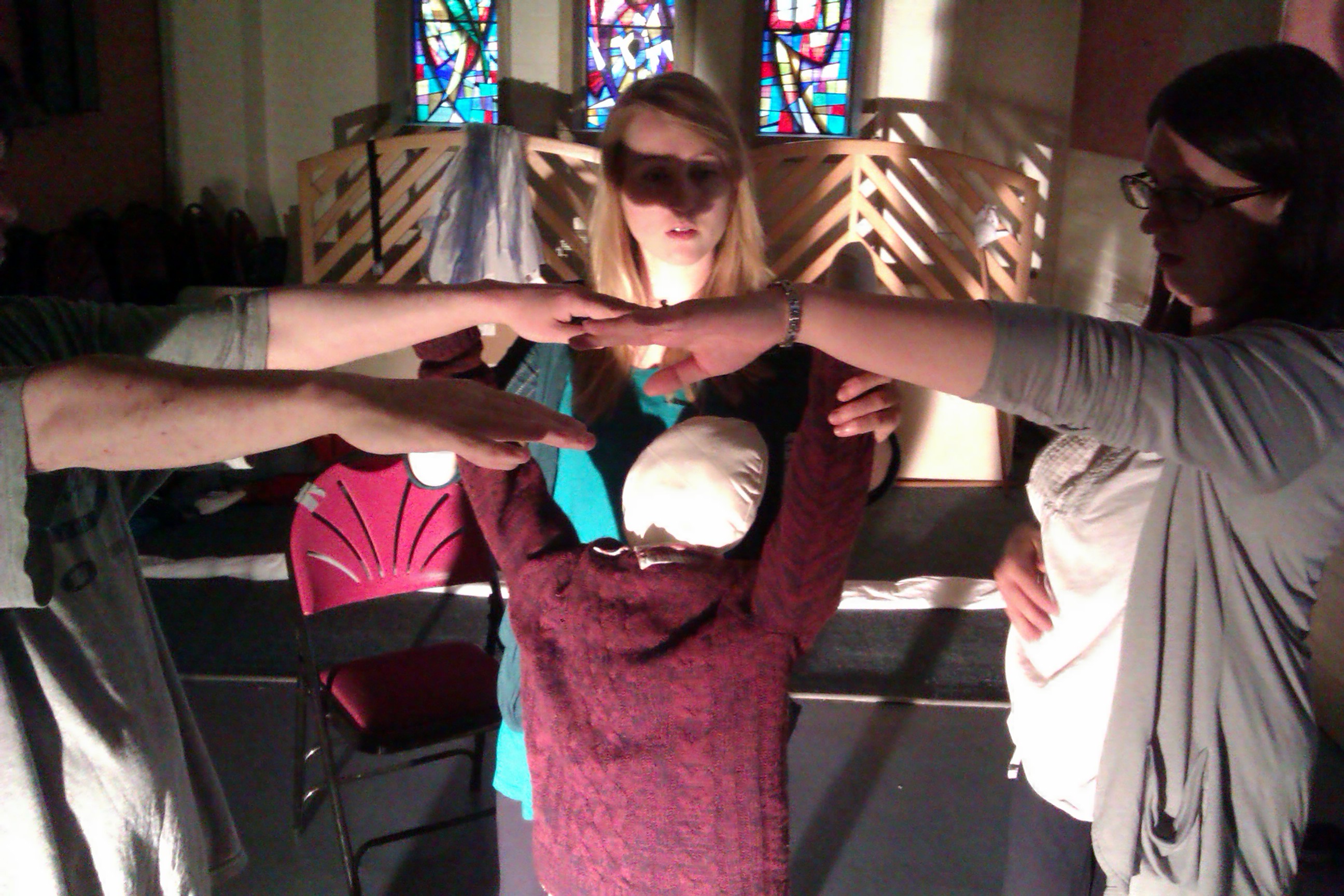 We performed the work-in-progress version of our first act in the From Devon with Love festival and managed to get a lot of helpful feedback from it, which was the main thing we were looking for. A lot of our ideas went down well, people liked our aesthetic and we found out a lot about which sections were working better than others. From the feedback we got two main points  – to push our more dramatic, aesthetically-interesting  parts futher, and to give the whole piece more of a storytelling feel. Although we did have some bits which were quite like storytelling theatre, the theme was definetly lacking when you looked at the piece overall. Rather than having flats to function as wings, and blackouts to disguise scene changes, it was suggested we ‘don’t hide the strings’, integrate the narration in the action and have the actors sit on a bench at the back of the stage when not in a scene and other such ideas.