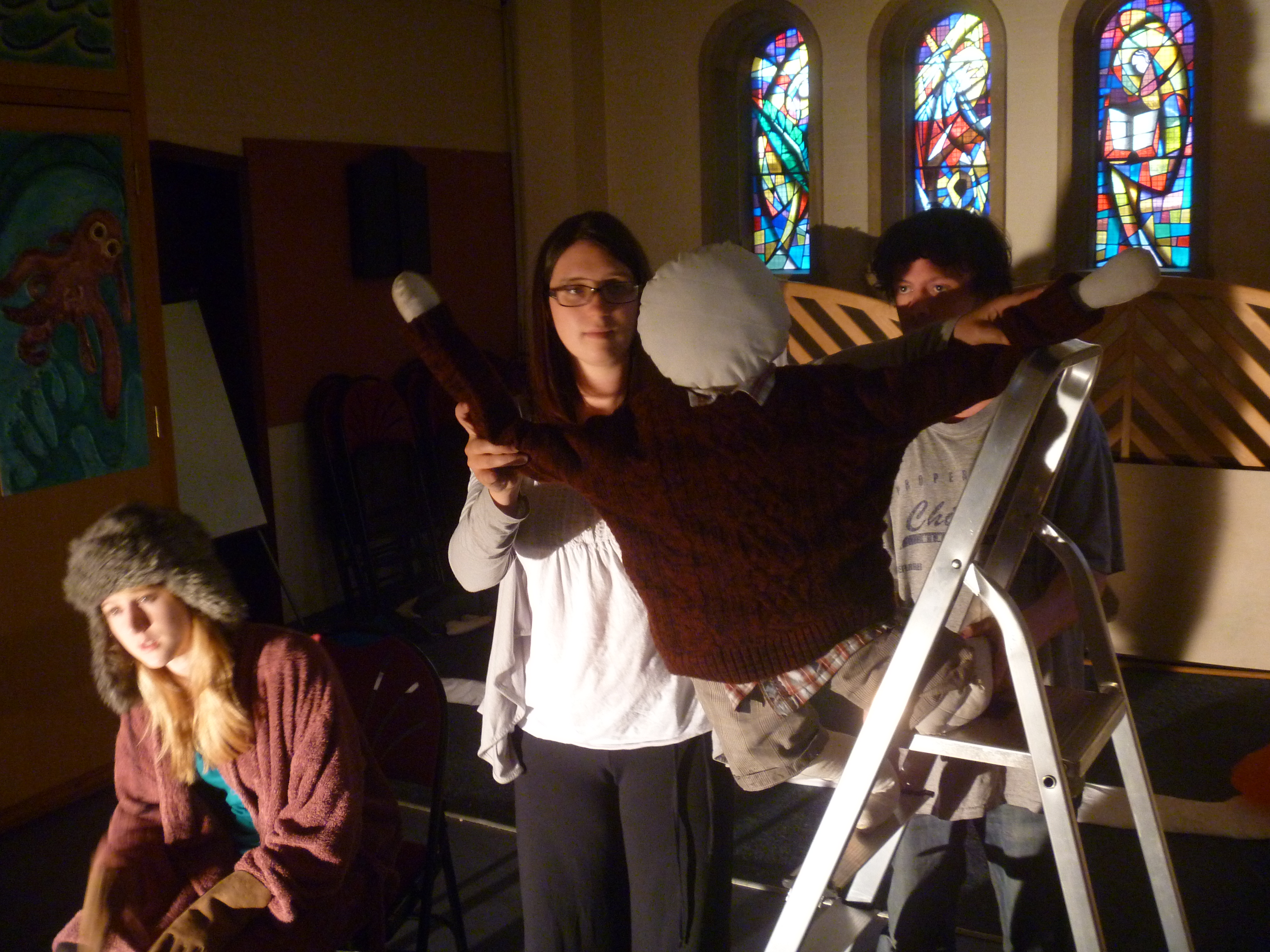 We perform at the Baptist Hall  today at 4:15 and tomorrow at 7:30 so be there for some lovely puppetry, music and theatre
